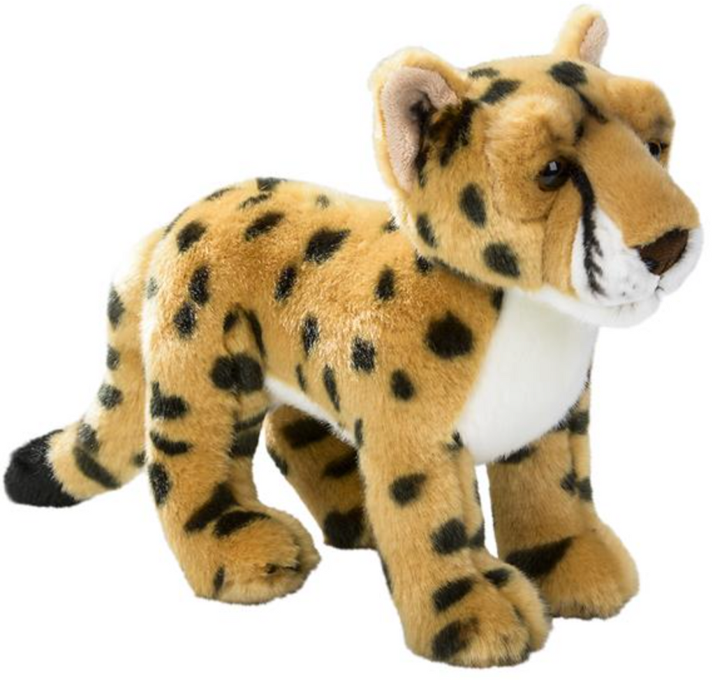 Standing at a foot tall, this intriguing cheetah will be the perfect addition to any plush collection. With a super soft yellow and black spotted body and hard-plastic yellow eyes, this cheetah is a quality plush.